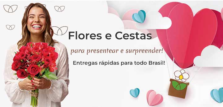 Nosso variado catálogo inclui não só uma vasta seleção de flores, mas cestas de café da manhã primorosamente preparadas, cestas de flores e cestas de presentes especiais. Cada um dos nossos produtos é criado com dedicação e cuidado, garantindo que seu gesto de carinho seja tão especial quanto a pessoa que vai recebê-lo.