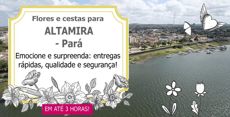 Efetuamos entregas de flores e cestas em Altamiraaté no mesmo dia, através das melhores floriculturas locais. Conforme o horário da compra, podemos fazer a entrega das fores em Altamiraem até 3 horas. Altamira é um município brasileiro localizado no estado do Pará, na Região Norte do país. Apesar de se saber que mesmo antes de 1750 antigas Missões Jesuíticas já habitavam a região do Xingu, resultando no surgimento da Vila de Altamira, o primeiro registro formal de sua existência data de 14 de abril de 1874, que cria o município de Souzel, no qual se inseria a região que hoje compreende o município de Altamira. Pela grande extensão física e necessidades administrativas, em 6 de novembro de 1911 cria-se o município de Altamira.