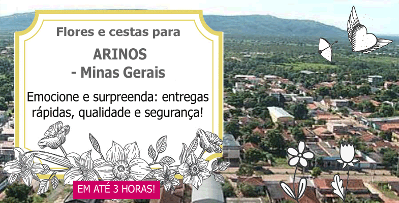 Efetuamos entregas de flores e cestas em Arinosaté no mesmo dia, através das melhores floriculturas locais. Conforme o horário da compra, podemos fazer a entrega das fores em Arinosem até 3 horas. Arinos é um município brasileiro do estado de Minas Gerais. Arinos é um município da região noroeste do estado de Minas Gerais. O lendário Anhanguera em 1717/18, ou Felisberto Caldeira Brant, em 1743/44, foram, provavelmente os desbravadores destas regiões, à busca de ouro e pedras preciosas. Presume-se que índios nômades, negros escravos e foragidos da justiça, teriam em princípio, habitado estas vastas paragens.