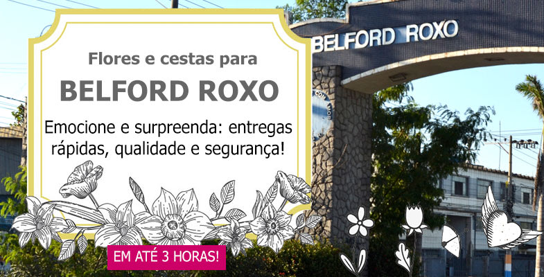 Efetuamos entregas de flores e cestas em Belford Roxo até no mesmo dia, através das melhores floriculturas locais. Conforme o horário da compra, podemos fazer a entrega das fores em Belford Roxo em até 3 horas. Belford Roxo é um município brasileiro localizado na Região Metropolitana do estado do Rio de Janeiro. Entregamos as mais belas flores e cestas em todos os bairros de Belford Roxo, como Paulini, Shangri-la, Heliópolis, Vale do Ipe, Bom Pastor, São José, Santa Tereza, Centro, São Vicente e muitos outros. Não importa a distância, emocione e surpreenda enviando as mais lindas flores e cestas para pessoas queridas com nossa floricultura em Belford Roxo e região!