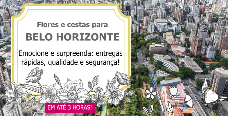 Efetuamos entregas de flores e cestas em Belo Horizonte até no mesmo dia, através das melhores floriculturas locais. Conforme o horário da compra, podemos fazer a entrega das fores em Belo Horizonte em até 3 horas. Belo Horizonte é um município brasileiro e a capital do estado de Minas Gerais. Entregamos as mais belas flores e cestas em todos os bairros de Belo Horizonte, como Sagrada Família, Buritis, Padre Eustaquio, Lindeia, Santa Monica, Ceu Azul, Centro, Santa Cruz, Santo Antonio, Jardim dos Comerciarios e muitos outros. Não importa a distância, emocione e surpreenda enviando as mais lindas flores e cestas para pessoas queridas com nossa floricultura em Belo Horizonte e região!