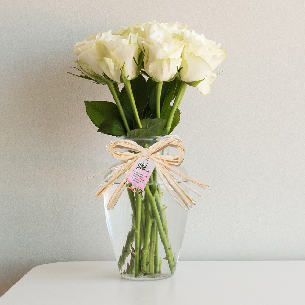Uma linda opção para você presentear e emocionar, não importa a distância: um delicado, elegante e radiante buquê com 6 rosas brancas em um lindo vaso. Aproximadamente 30 cm de altura. Envie sua mensagem de carinho através das flores!