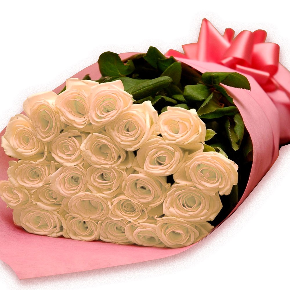 Um lindo buquê com rosas brancas, com montagem e folhagens em estilo tradicionais e depois colocado em um vaso transparente para harmonizar com toda beleza e elegancia do buquê. As rosas são preparadas manualmente para a retirada de espinhos e folhagens excessivas, e o buquê é embalado com laço de ráfia ou fita de cetim. Um presente especial para todos os momentos.