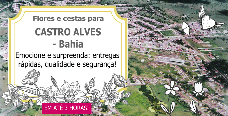 Efetuamos entregas de flores e cestas em Castro Alves até no mesmo dia, através das melhores floriculturas locais. Conforme o horário da compra, podemos fazer a entrega das fores em Castro Alves em até 3 horas. A história do município começa no século XVIII, quando a então sesmaria de Aporá foi desmembrada em duas, sendo uma delas doada a João Evangelista de Castro Tanajura, que, para colonizá-la, distribuiu terras com a condição de que os beneficiários iniciassem plantações e construíssem moradias e currais.