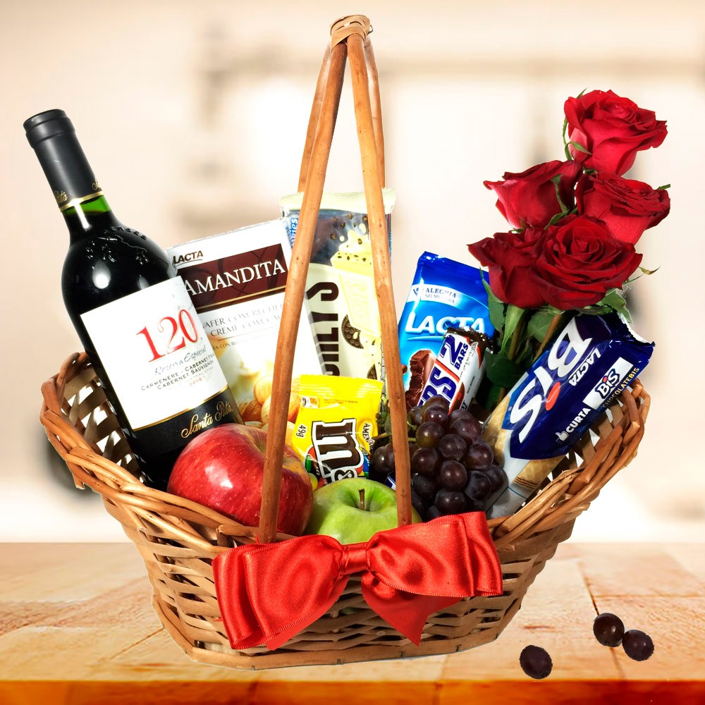 Que tal tornar ainda mais especial o dia de uma pessoa querida? Surpreenda com uma bela cesta com deliciosos produtos para um café da manhã ou chá da tarde, acompanhada de um belo e delicado arranjo de rosas vermelhas. Esta cesta contém itens como: