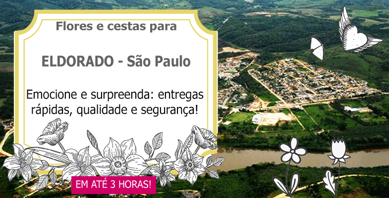 Efetuamos entregas de flores e cestas em Eldoradoaté no mesmo dia, através das melhores floriculturas locais. Conforme o horário da compra, podemos fazer a entrega das fores em Eldoradoem até 3 horas. Eldorado (anteriormente Xiririca) é um município brasileiro do estado de São Paulo.