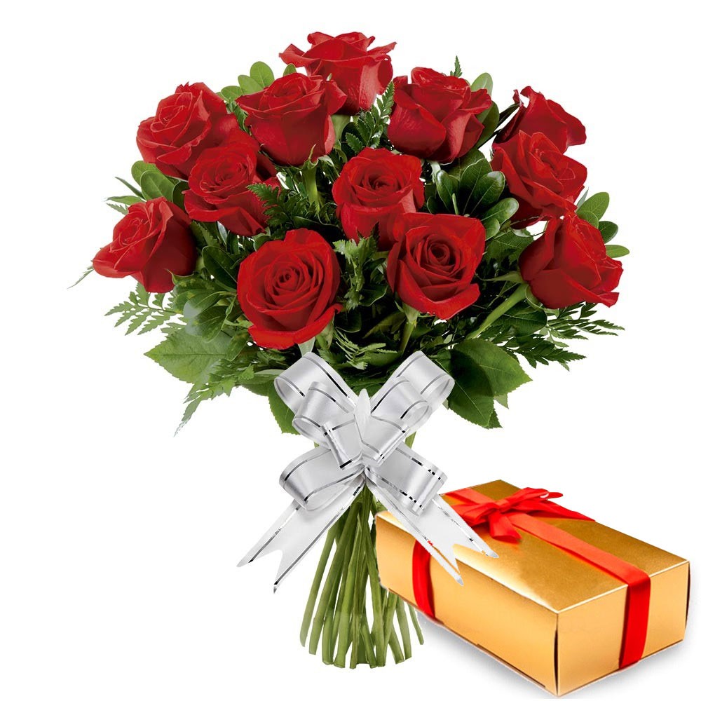 Demonstre sentimentos e carinho com a beleza e perfume das flores. Um belo buquê com 12 rosas nacionais vermelhas, com aproximadamente 50 cm de altura, acompanhando uma caixa de bombons sortidos Nestlé ou Lacta com 400g. Produzido com flores frescas e selecionadas, sujeitas por isso à substituição por flores equivalentes conforme a localidade, esse produto é confeccionado localmente na data da entrega com todo carinho por nossos floristas locais. Assim as flores não sofrem com viagens em longas distâncias, preservando sua qualidade, frescor e perfume.