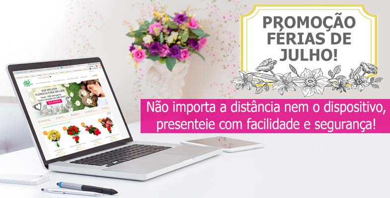 Além das datas comemorativas e especiais (Quem faz aniversário este mês?), as férias de Julho estão aí. Talvez você vá gozar de merecido descanso e estará longe de uma pessoa querida num dia especial. Essa é uma excelente oportunidade de se fazer presente enviando uma mensagem de carinho através da beleza e perfume das flores...