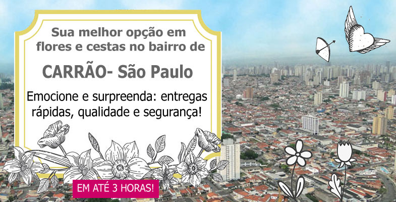 Nossa floricultura online entrega com rapidez, eficiência e qualidade também em todo o Bairro do Carrão. Surpreenda e emocione com flores e cetas de café da manhã especiais!