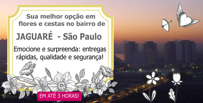 Nossa floricultura online entrega com rapidez, eficiência e qualidade também em todo o Bairro do Jaguaré. Surpreenda e emocione com flores e cetas de café da manhã especiais!