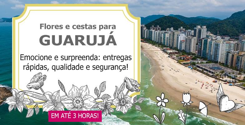 Efetuamos entregas de flores e cestas em Guarujá até no mesmo dia, através das melhores floriculturas locais. Conforme o horário da compra, podemos fazer a entrega das fores em Guarujá em até 3 horas. Guarujá é um município brasilleiro do estado de São Paulo. Entregamos as mais belas flores e cestas em todos os bairros de Guarujá, como Itapema, Pae Cará, Morrinhos, Jardim Boa Esperança, Vila Áurea, Cachoeira, Santo Antonio, Enseada, Porto e muitos outros. Não importa a distância, emocione e surpreenda enviando as mais lindas flores e cestas para pessoas queridas com nossa floricultura em Guarujá e região!