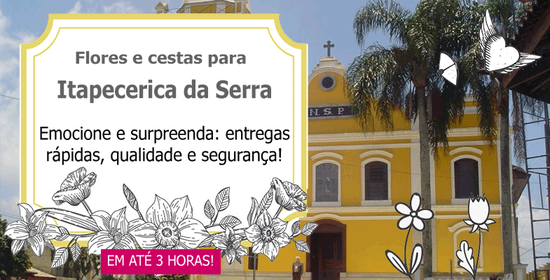 Efetuamos entregas de flores e cestas em Itapecerica da Serra até no mesmo dia, através das melhores floriculturas locais. Conforme o horário da compra, podemos fazer a entrega das fores em Itapecerica da Serra em até 3 horas. Itapecerica da Serra é um município brasileiro no interior do estado de São Paulo. Localizado na Região Centro-Leste do estado na microrregião homônima e na mesorregião de Piracicaba, a 85 km do Aeroporto Internacional de Viracopos em Campinas e a 173 km da capital São Paulo.