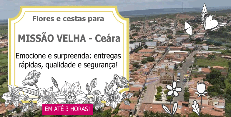 Efetuamos entregas de flores e cestas em Missão Velhaaté no mesmo dia, através das melhores floriculturas locais. Conforme o horário da compra, podemos fazer a entrega das fores em Missão Velhaem até 3 horas. Missão Velha é um município brasileiro do estado do Ceará. Segundo uma das versões, o Cariri cearense foi colonizado por emissários da Casa da Torre, um deles, João Correia Arnaud, chegou à região no início do Século XVIII, vindo da região de Inhambupé na Bahia e considerado descendente de Diogo Álvares Correia, o Caramuru, um dos primeiros brancos a se fixarem no Brasil. Um jovem escravo fugido foi criado pelos índios cariris, um grupo refugiado do Planalto da Borborema pela penetração dos brancos, ao qual se agregaram quilombolas e outras tribos. Com a guerra entre estes cariris, que deram nome a região, e os guerreiros Cariús, aquele escravo, que sabia falar português, foi nomeado emissário. Em apoio aos cariris, João Correia Arnaud e outros vaqueiros foram enviados com homens, armas de fogo e títulos conseguidos pelos D’Ávila, iniciando a colonização do lugar, fundaram igrejas e estabeleceram as primeiras fazendas, sendo este ou seu homônimo o fundador desta cidade de Missão Velha.