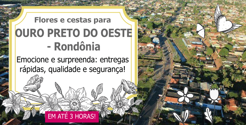 Efetuamos entregas de flores e cestas em Ouro Preto do Oesteaté no mesmo dia, através das melhores floriculturas locais. Conforme o horário da compra, podemos fazer a entrega das fores em Ouro Preto do Oesteem até 3 horas. Ouro Preto do Oeste é um município brasileiro do estado de Rondônia.