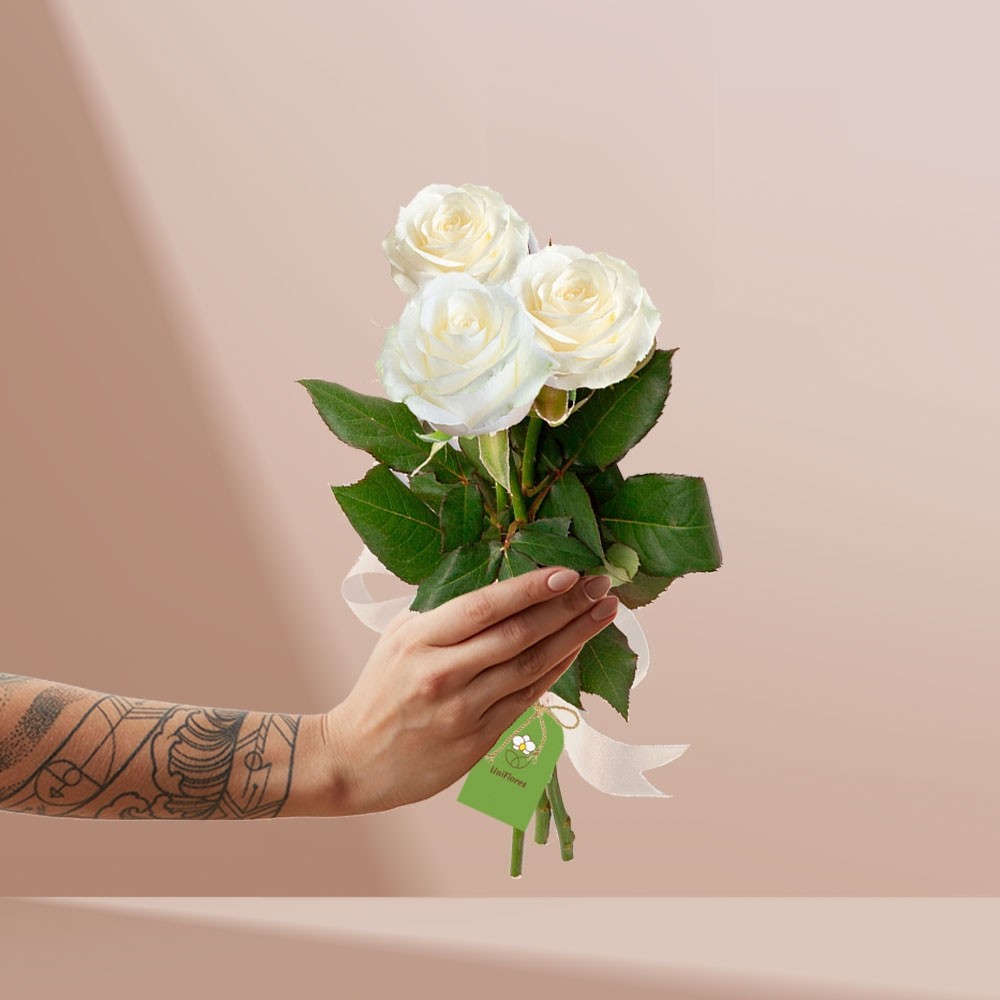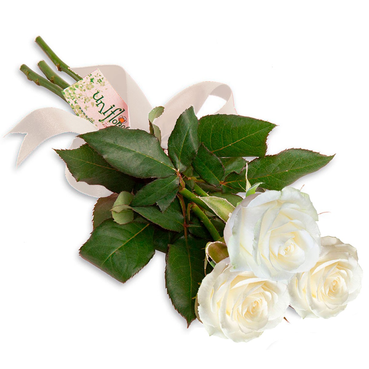 Uma bela opção para você enviar uma mensagem especial de uma forma simples e encantadora... Que tal um delicado ramalhete com 3 lindas rosas brancas nacionais de primeira qualidade e folhagens, embaladas delicadamente com um laço para presentear. Ramalhete delicadamente embalado à mão com rosas brancas ou em tons claros de aproximadamente 30 cm de altura. Rosas são consideradas as rainhas das flores, e são conhecidas por sua beleza e por seu aroma, pois onde passam deixam um cheiro suave e marcante.