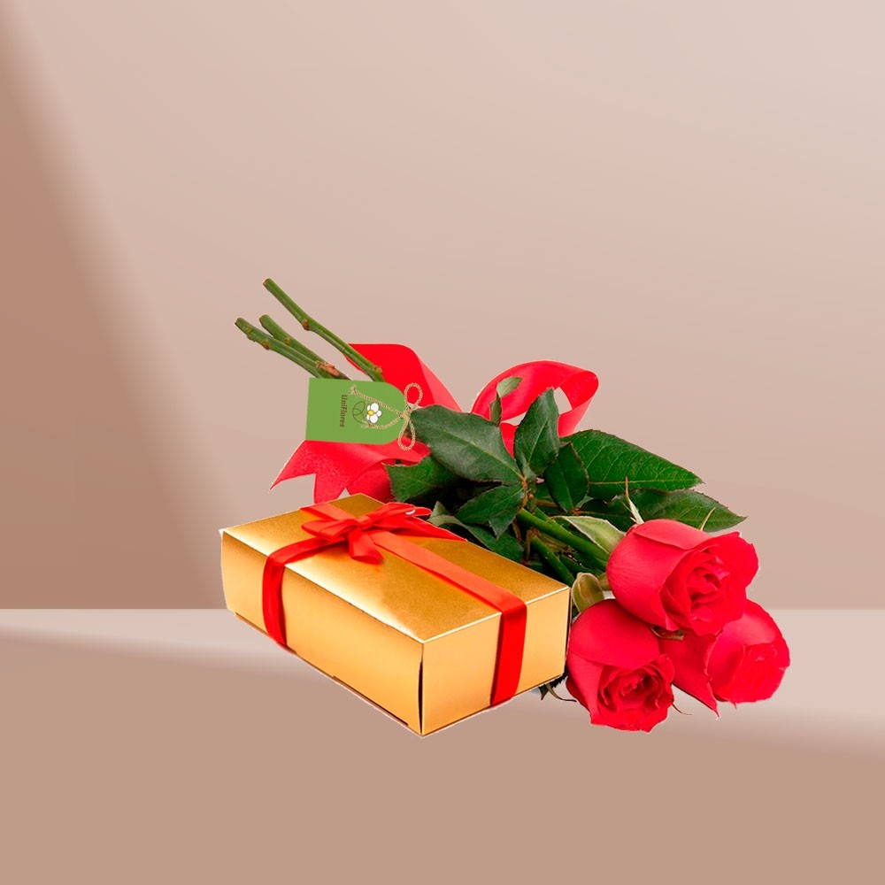 Você quer enviar uma mensagem especial de uma forma simples e encantadora? Que tal um delicado ramalhete com 3 lindas rosas nacionais de primeira qualidade e folhagens, embaladas delicadamente com um laço para presentear. Ramalhete com aproximadamente 30 cm de altura. Acompanha uma caixa de bombons Grandes Sucessos Lacta ou Especialidades Nestlé, 332g. Arranjo produzido com flores frescas e selecionadas, sujeitas por isso à substituição por flores equivalentes conforme a localidade, esse produto é confeccionado localmente na data da entrega com todo carinho por nossos floristas locais. Assim as flores não sofrem com viagens em longas distâncias, preservando sua qualidade, frescor e perfume.
