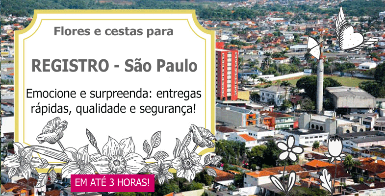 Efetuamos entregas de flores e cestas em Registro até no mesmo dia, através das melhores floriculturas locais. Conforme o horário da compra, podemos fazer a entrega das fores em Registro em até 3 horas. O nascimento do povoado de Registro está relacionado à procura de ouro por meio de vias fluviais no rio Ribeira de Iguape. As primeiras jazidas de ouro do Brasil foram descobertas na região do Médio Ribeira no século XVII. Durante este ciclo do ouro, o povoamento avançou para o interior, subindo o curso do Rio Ribeira de Iguape. O ouro de lavagem na sub-bacia do Alto Ribeira, garimpado em Xiririca (atual Eldorado) nos rios Pedro Cubas, Taquari e afluentes, e em Sete Barras nos rios Etá, Quilombo e Ipiranga (entre outros) era transportado em canoas e fiscalizado no porto fluvial adjunto à casa do Fisco à margem direita do rio Ribeira de Iguape nas terras da vila de Nossa Senhora das Neves de Iguape (localizada no porto marítimo que originou a atual cidade de Iguape). O povoado que habitava o porto de registro do ouro originou a sede do atual Município de Registro.
