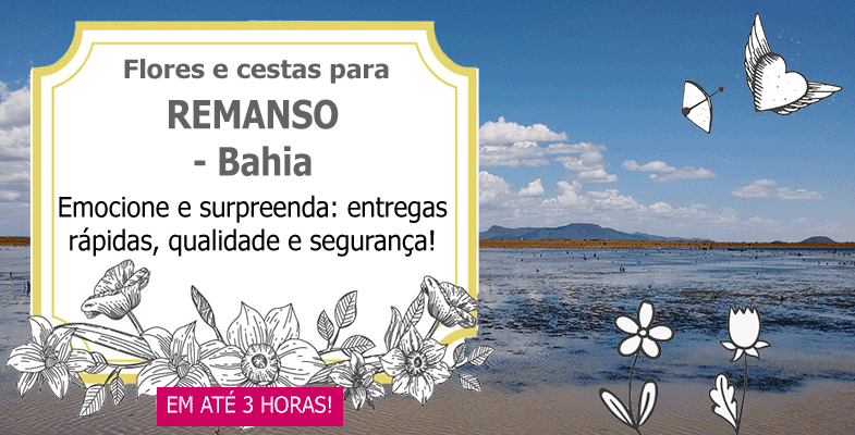 Efetuamos entregas de flores e cestas em Remanso até no mesmo dia, através das melhores floriculturas locais. Conforme o horário da compra, podemos fazer a entrega das fores em Remanso em até 3 horas. Remanso é um município brasileiro no interior do estado da Bahia,às Margens do Rio São Francisco, na microrregião de Juazeiro. Com a construção da Hidrelétrica de Sobradinho, os municípios de Remanso, Casa Nova, Sento Sé, Pilão Arcado e Sobradinho, passaram por um processo de mudança marcado pela retirada da população destas cidades que foram inundadas pela represa nos anos 70.