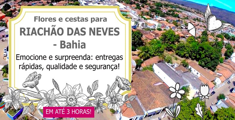 Efetuamos entregas de flores e cestas em Riachão das Neves até no mesmo dia, através das melhores floriculturas locais. Conforme o horário da compra, podemos fazer a entrega das fores em Riachão das Neves em até 3 horas. Riachão das Neves é um município brasileiro do estado da Bahia. No ano de 1660 o então 32º Governador Geral do Brasil Dom João de Lan-Castro, autorizou uma expedição para navegar os afluentes do Rio São Francisco, entre eles Rio Grande, Rio Preto e Rio Corrente. .