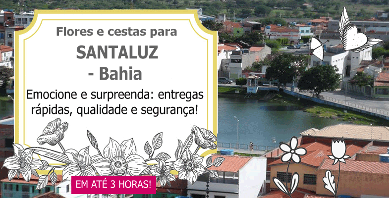 Efetuamos entregas de flores e cestas em Santaluz até no mesmo dia, através das melhores floriculturas locais. Conforme o horário da compra, podemos fazer a entrega das fores em Santaluz em até 3 horas. Santaluz é um município brasileiro do estado da Bahia. A sede municipal de Santaluz se originou, no século passado, de uma estação ferroviária da Leste Brasileiro, obra implantada em local onde havia uma aglomeração de casas, dentro da Fazenda Santa Luzia, no município de Queimadas. Com a inauguração e utilização freqüente da estação, formou-se um arraial, sendo edificadas casas residenciais e comerciais. Município criado com a denominação de Santa Luzia e território desmembrado de município de Queimadas por Decreto Estadual de 18 de Julho de 1935.
