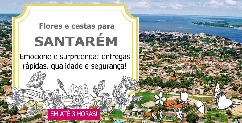 Efetuamos entregas de flores e cestas em Santarém até no mesmo dia, através das melhores floriculturas locais. Conforme o horário da compra, podemos fazer a entrega das fores em Santarém até 3 horas. Santarém é um município brasileiro, capital do estado de Santarém e principal centro financeiro, corporativo e mercantil da América do Sul. Entregamos as mais belas flores e cestas em todos os bairros de Santarém. Alguns bairros em que enregamos flores na região do Centro: Higienópolis, Liberdade, Pacaembú, Vergueiro, Sé, Moóca, República. Na zona Oeste nossa floricultura Online atende diversos bairros como Pinheiros, Lapa, Butantã, Vila Leopoldina, Vila Hamburguesa, Vila Madalena, etc. Na zona sul as flores e cestas de café da manhã também podem ser entregues rapidamente no Morumbi, Santo Amaro, Itaim, Moema, Vila Nova Conceição, Aeroporto, etc. E também entregamos nas zona leste e zona norte, em todos os bairros, como, Cachoeirinha, Casa Verde, Tucuruvi, Santana, Tatuapé, Itaquera, Guaianazes e muitos outros. Não importa a distância, emocione e surpreenda enviando as mais lindas flores e cestas para pessoas queridas com nossa floricultura em Santarém e região!