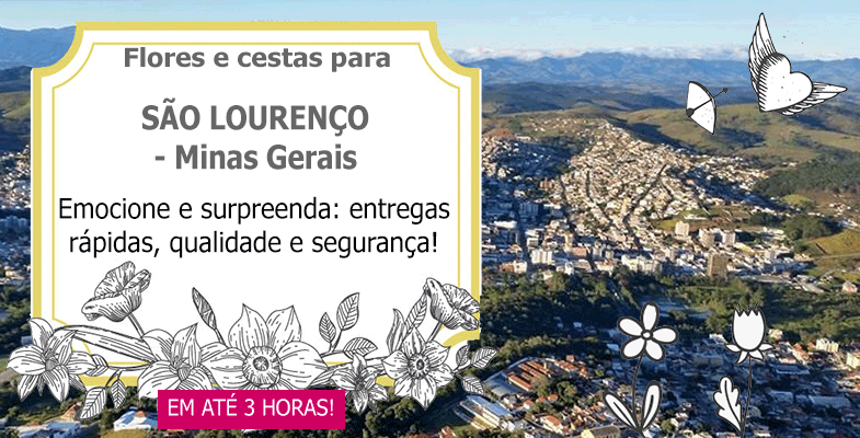 Efetuamos entregas de flores e cestas em São Lourençoaté no mesmo dia, através das melhores floriculturas locais. Conforme o horário da compra, podemos fazer a entrega das fores em São Lourençoem até 3 horas. São Lourenço é um município brasileiro do estado de Minas Gerais, uma das mais conhecidas estâncias hidrominerais do Brasil.