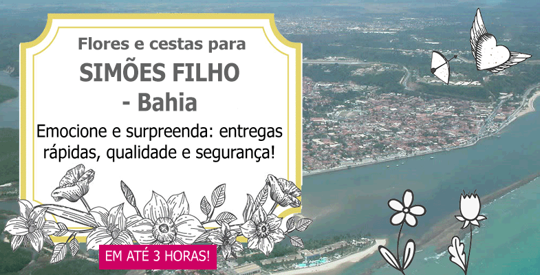 Efetuamos entregas de flores e cestas em Simões Filhoaté no mesmo dia, através das melhores floriculturas locais. Conforme o horário da compra, podemos fazer a entrega das fores em Simões Filhoem até 3 horas. Simões Filho é um município brasileiro do estado da Bahia. O lugar era originalmente parte da área do Recôncavo onde desde o século XVII se instalaram os engenhos produtores da cana-de-açúcar. O município foi criado a partir da emancipação do então distrito soteropolitano de Água Comprida, com sua denominação atual, em 7 de novembro de 1961, pela lei 1538. Seu nome homenageia o jornalista e político Ernesto Simões Filho, fundador do jornal A Tarde, ainda hoje existente.