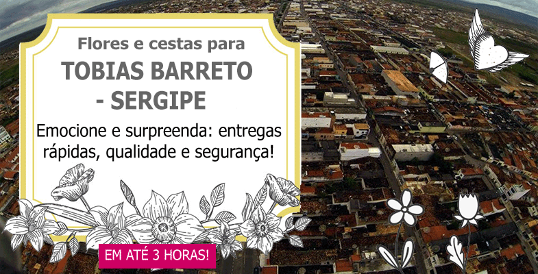 Efetuamos entregas de flores e cestas em Tobias Barretoaté no mesmo dia, através das melhores floriculturas locais. Conforme o horário da compra, podemos fazer a entrega das fores em Tobias Barretoem até 3 horas. Tobias Barreto surgiu no final do século XVI em um sítio de aproximadamente 40 tarefas, onde apareceu uma imagem de Nossa Senhora. E em homenagem a esta os camponeses construíram uma capelinha e fizeram residências em volta dela formando uma aldeia batizada de Paraíso. A imagem de Nossa Senhora desapareceu por duas vezes sendo encontrada num matagal próximo. Na segunda vez destruíram o matagal e construíram outra capelinha onde hoje fica a Igreja Matriz..