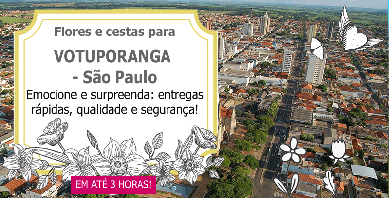 Efetuamos entregas de flores e cestas em Votuporanga até no mesmo dia, através das melhores floriculturas locais. Conforme o horário da compra, podemos fazer a entrega das fores em Votuporanga em até 3 horas. Votuporanga é um município brasileiro situado na região noroeste do estado de São Paulo. A cidade foi fundada em 8 de agosto de 1937. Localiza-se a uma latitude 20º25'22" Sul e a uma longitude 49º58'22" Oeste, estando a uma altitude de 525 metros. Sua população em 2014 de acordo com o IBGE, é de 91.278 habitantes.